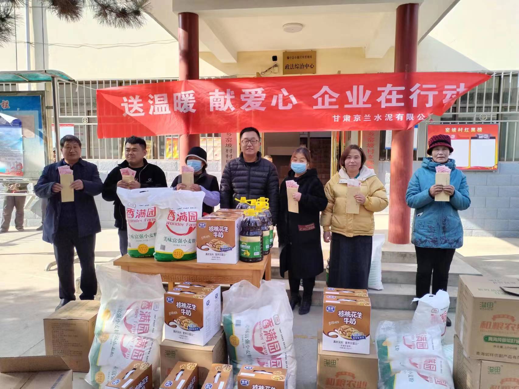歲寒情更濃,牽掛暖人心。在春節(jié)來臨之際,甘肅京蘭水泥有限公司黨支部在企業(yè)所在地小康營鄉(xiāng)、新營鎮(zhèn)、高崖鎮(zhèn)開展了“送溫暖,獻(xiàn)愛心,企業(yè)在行動”村企聯(lián)建活動,主要對涉企鄉(xiāng)鎮(zhèn)的老年人、困難家庭及罹患重病人員進(jìn)行了慰問。此次活動累計慰問困難群眾122人(戶),發(fā)放面粉(10kg)122袋、食用油(5kg)122桶、純牛奶122箱、重病人員500元現(xiàn)金/人。