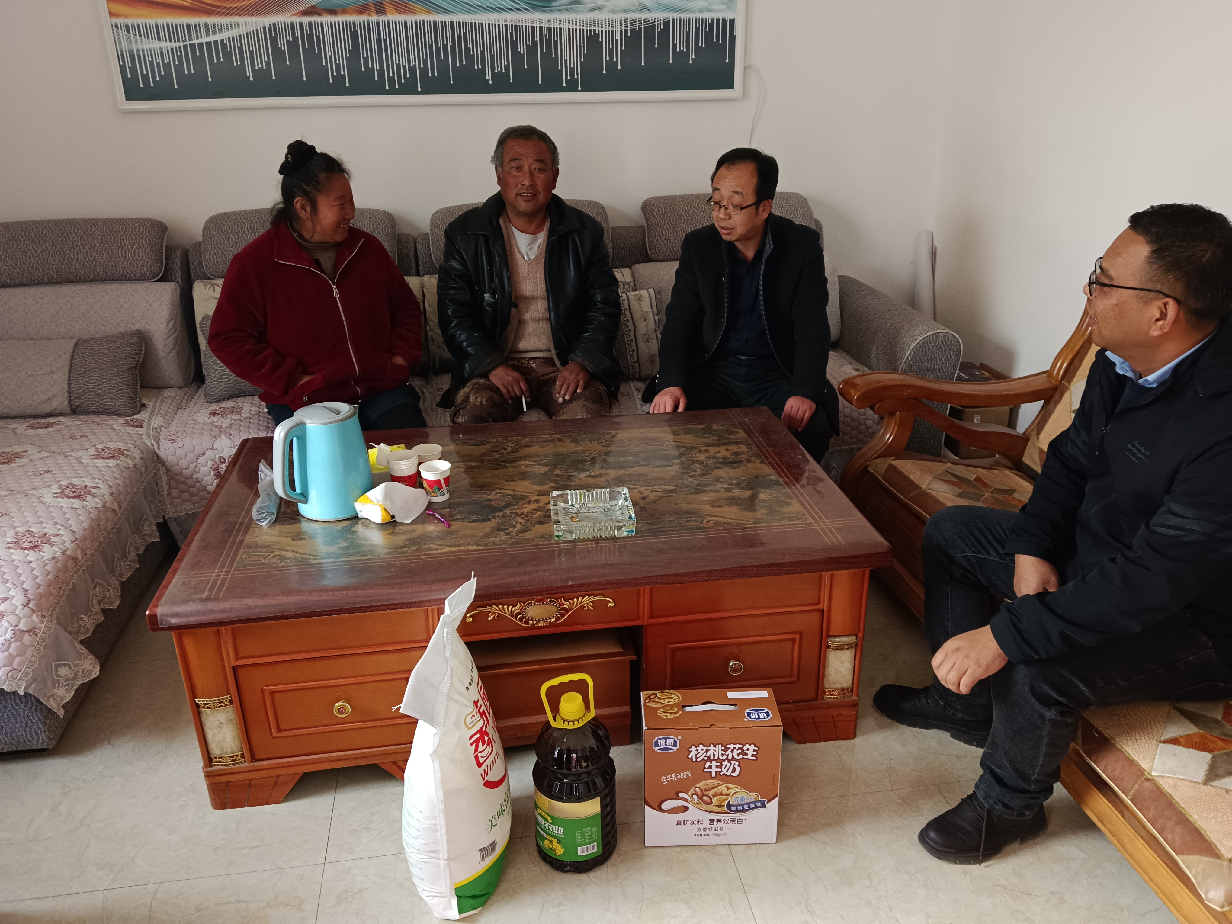 活動結(jié)束后,我公司黨支部書記陳禮協(xié)同高崖鎮(zhèn)人大主席金赟、砂河村書記張發(fā)軍對5戶困難家庭進(jìn)行了上門慰問。通過走訪慰問,積極了解困難群眾的實際生活狀況,并詢問困難群眾的身體狀況,家庭收入等,幫助他們解決實際困難,鼓勵他們積極樂觀地面對生活,并為他們送去了慰問品以及節(jié)日的祝福,進(jìn)一步體現(xiàn)出政府和企業(yè)對困難群眾的全方位關(guān)懷與照顧。